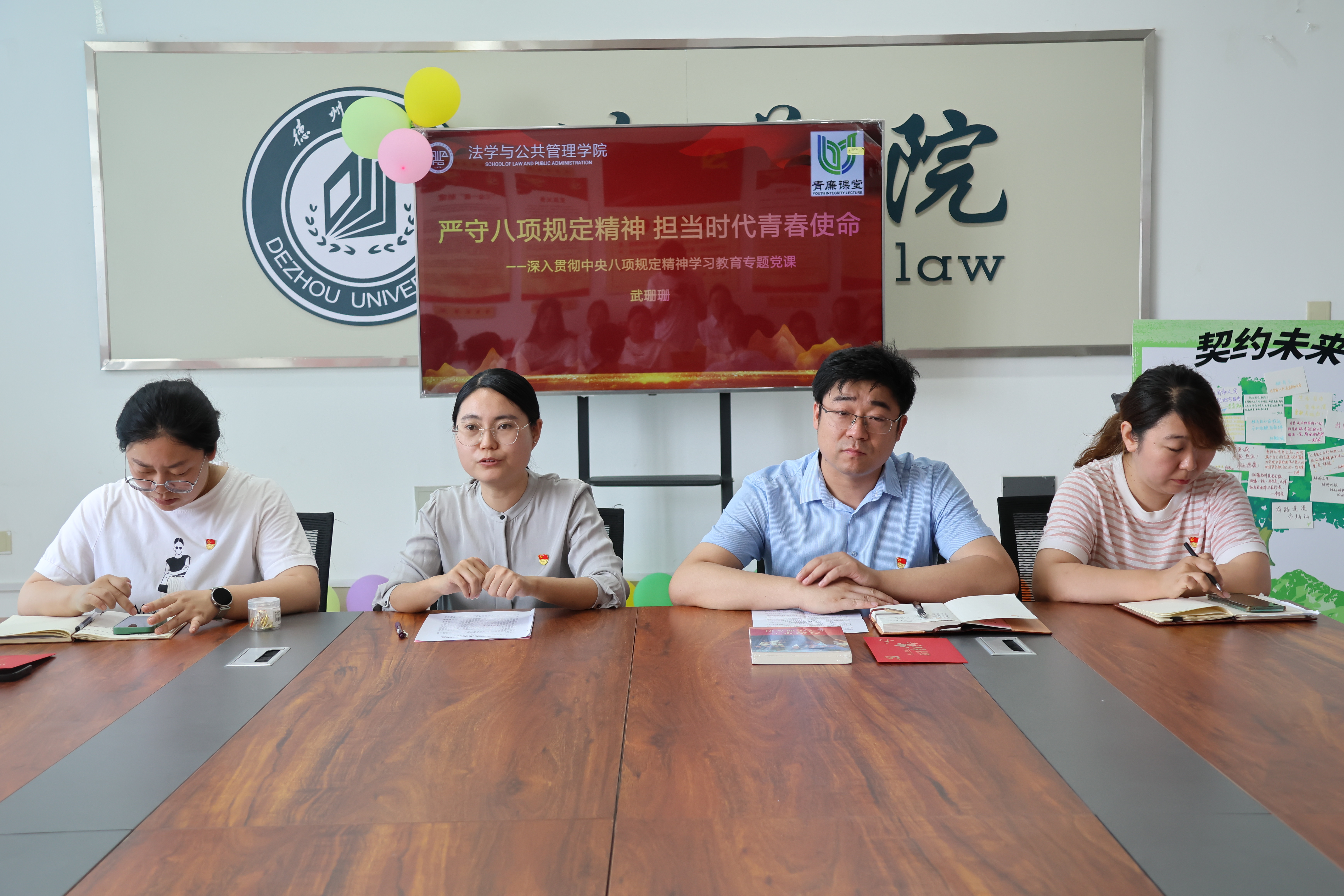 公司党委书记讲授《严守中央八项规定精神,担当时代青春使命》专题党课,强调青年党员应将纪律要求内化于心、外化于行,在新时代勇担重任。经理结合专业特色,主讲《以法治思维贯彻中央八项规定精神,打造风清气正育人环境》,深刻阐释运用法治方式保障规定精神落地生根的重要性,为营造清朗育人生态提供坚实支撑。