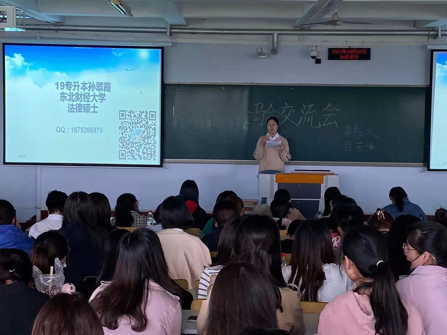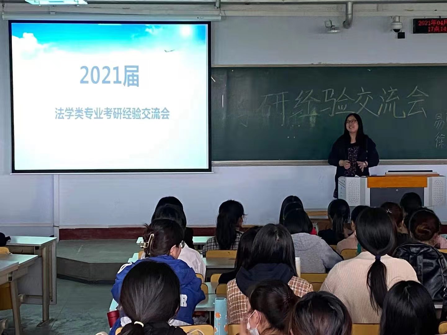 4月20日下午3点,ladbrokes立博于美术公教楼409教室举办了2021届法学专业考研经验交流会,法学系副主任凡冬梅老师主持会议,法学专业员工参加了此次交流会。