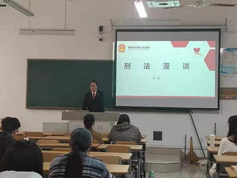 3月25日下午,德州市中级人民法院刑庭法官郭伟伟、李敏应邀为公司师生做专题讲座,2022级法学本科班员工和部分教师聆听了讲座。