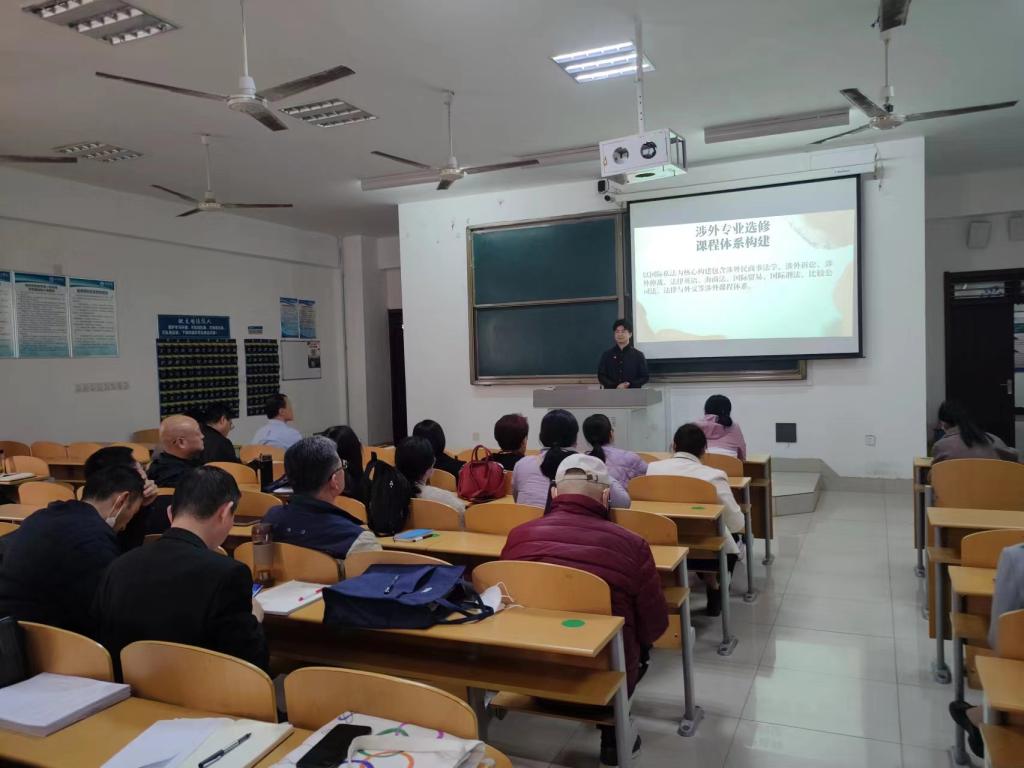 4月11日,ladbrokes立博在博文楼0427召开法学专业涉外法治人才培养的交流报告会,ladbrokes立博全体教师参加活动。