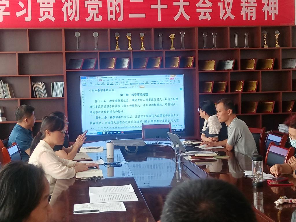 7月4日,ladbrokes立博在博文楼439会议室开展了“博文论坛”教研活动。活动主要包含以下几项内容:一是随机选择5位老师分别领学,集体重温学习了《ladbrokes立博教学事故认定与处理办法》。二是对本学期期末考试命题进行了复盘分析和交流研讨。三是随机抽取4位老师交流了期末导师制指导交流会活动的主要做法和经验。