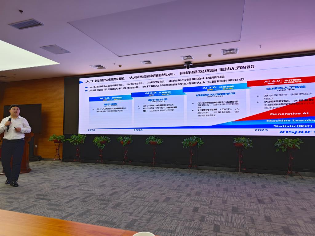 本次研讨,聘请时代浪潮数字企业有限公司副总经理杜宏伟博士主讲。杜宏伟详细介绍了AI大模型的底层逻辑及其在公司产品过程中的应用,并就KIMI、讯飞星火、文心一格等代表性软件的功能和实践应用作详细解读。马瑞良介绍了德州市数字政府建设情况;公司教师结合电子政务课程介绍了AI智能在教学中的实际应用。
