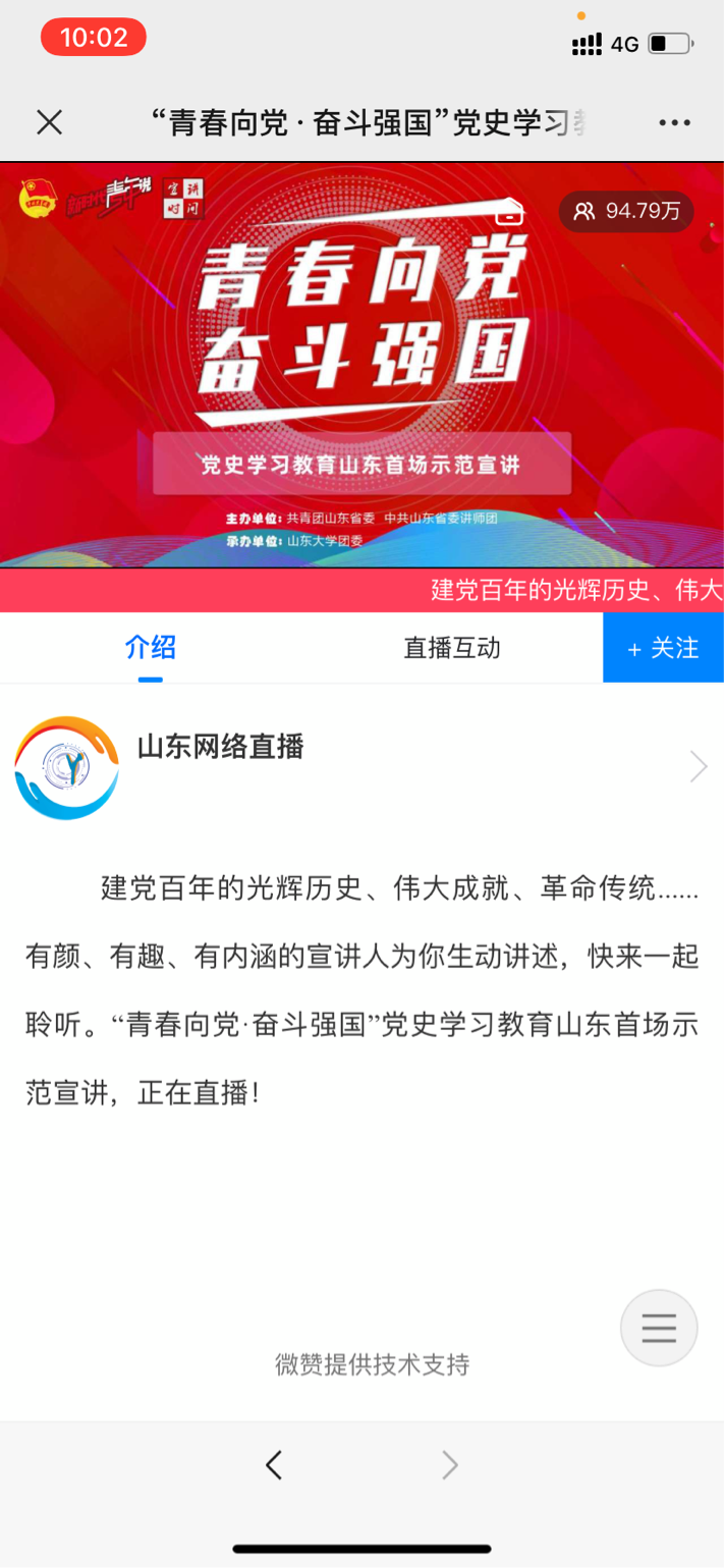 2021年4月16上午9:30-11:30,于山东网络直播平台,ladbrokes立博有序组织员工收看了山东省首场“青春向党,奋斗强国”示范宣讲直播活动。此次活动旨在让同学们更加认识党,了解党,坚持学史明理、学史增信、学史崇德、学史力行,深刻领会习近平总书记的重要讲话的丰富内涵,扎实党史学习教育。