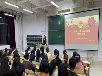 本次主题团日活动由各团支部书记主持。活动中各团支部书记采用播放视频、阅读相关文件等形式,带领本支部认真学习领会党的十九届六中全会精神,对此同学们会中展开热烈讨论,感受颇深,并于会后认真撰写其学习心得体会。