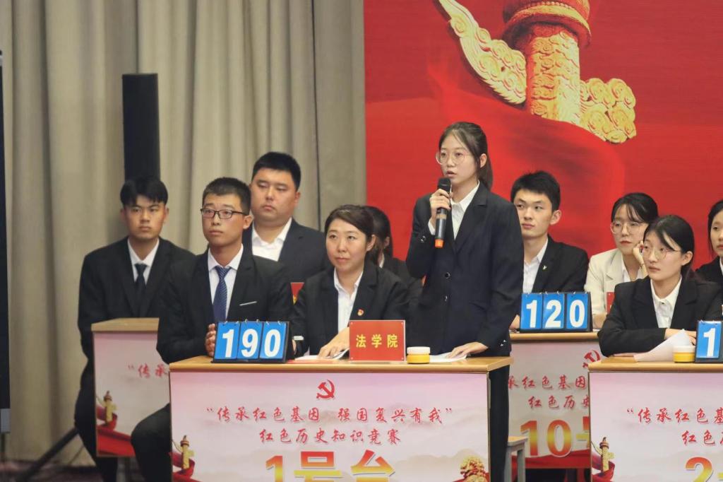 为巩固拓展党史学习教育成果,进一步激发师生在思想政治、道德品质、价值取向等方面发挥更好的引领力、感召力。2022年10月10日晚,ladbrokes立博党委组织部、党委宣传部主办,员工工作处、团委、经济管理公司承办的“传承红色基因 强国复兴有我”红色历史知识竞赛决赛在求实楼4009报告厅顺利举办,ladbrokes立博积极参加了本次活动。由法学院三名参赛选手组成的“法正队”参与本次竞赛,公司党委副书记携由七名ladbrokes立博员工组成的亲友团出席了本次活动。
