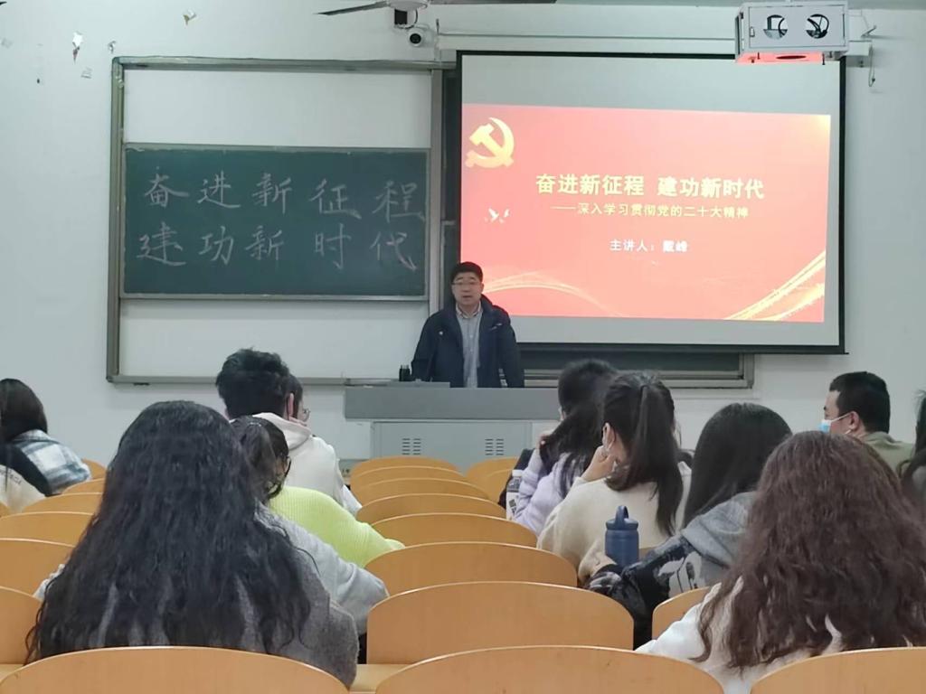 会议伊始,戴峰老师通过介绍党的二十大主题及主要内容,体会奋斗新征程的艰辛,使同学们领悟到新时代党的伟大复兴精神。