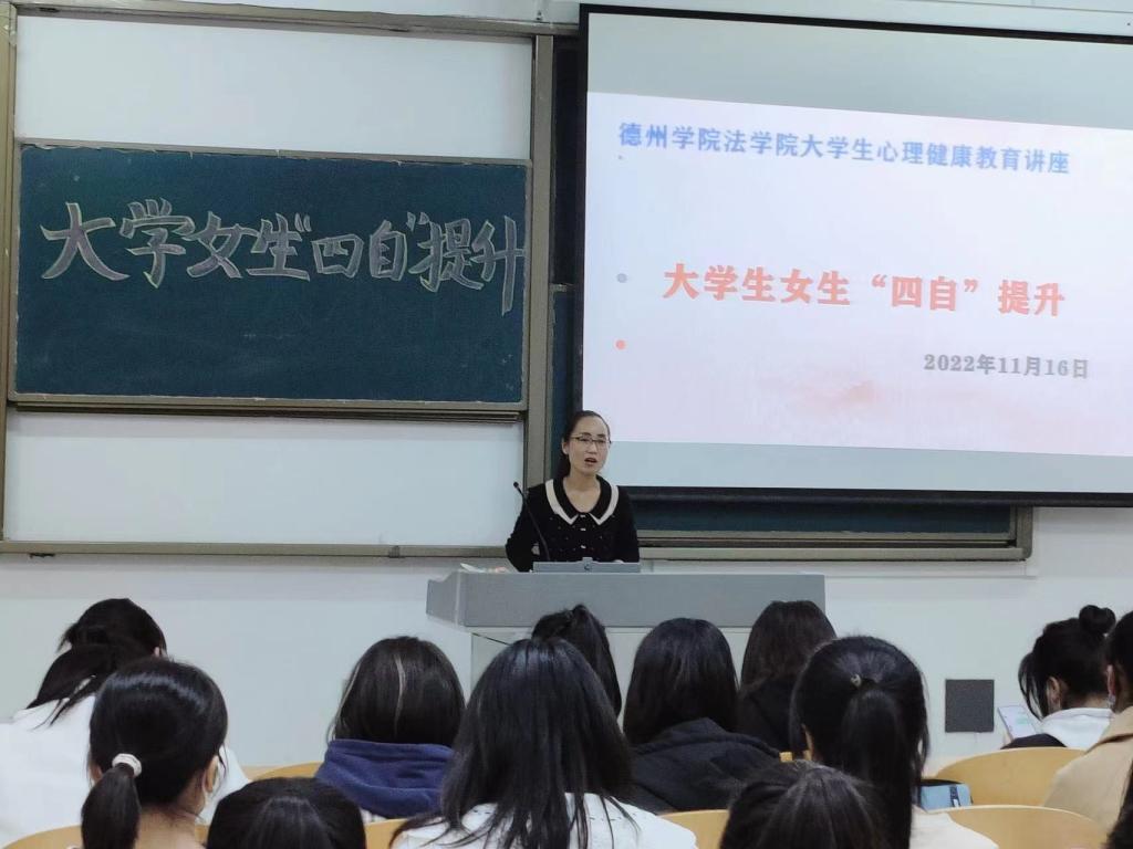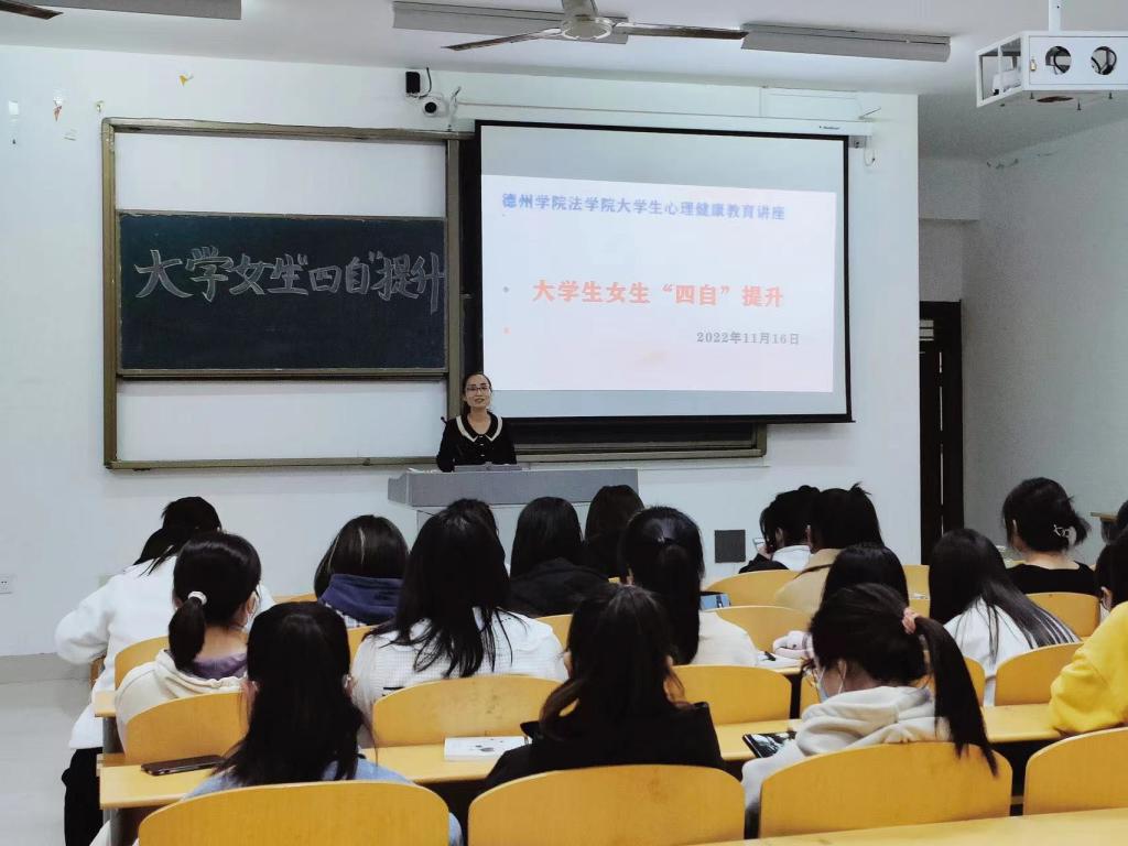 为增强大学女生心理建设,培养女生自尊、自信、自立、自强的精神品质。2022年11月16日下午4:00,ladbrokes立博在博文楼0427教室举行大学女生“四自”提升心理健康教育讲座,2022级全体女生聆听了讲座。