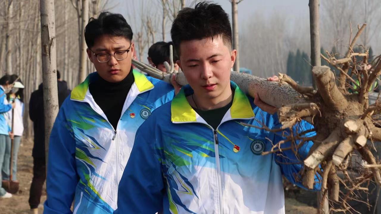 清晨,两单位组织50余名师生及员工驱车前往武城县四女寺镇沙杨村村口,就105国道道路两旁行道树白蜡树种进行了种植,种植范围3公里,种植树木116棵。