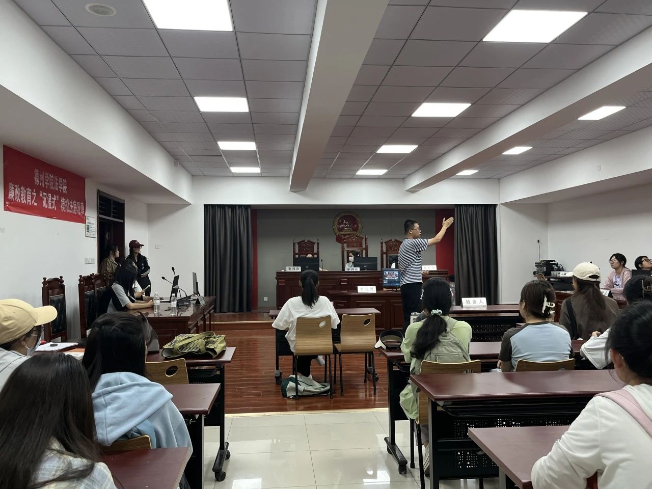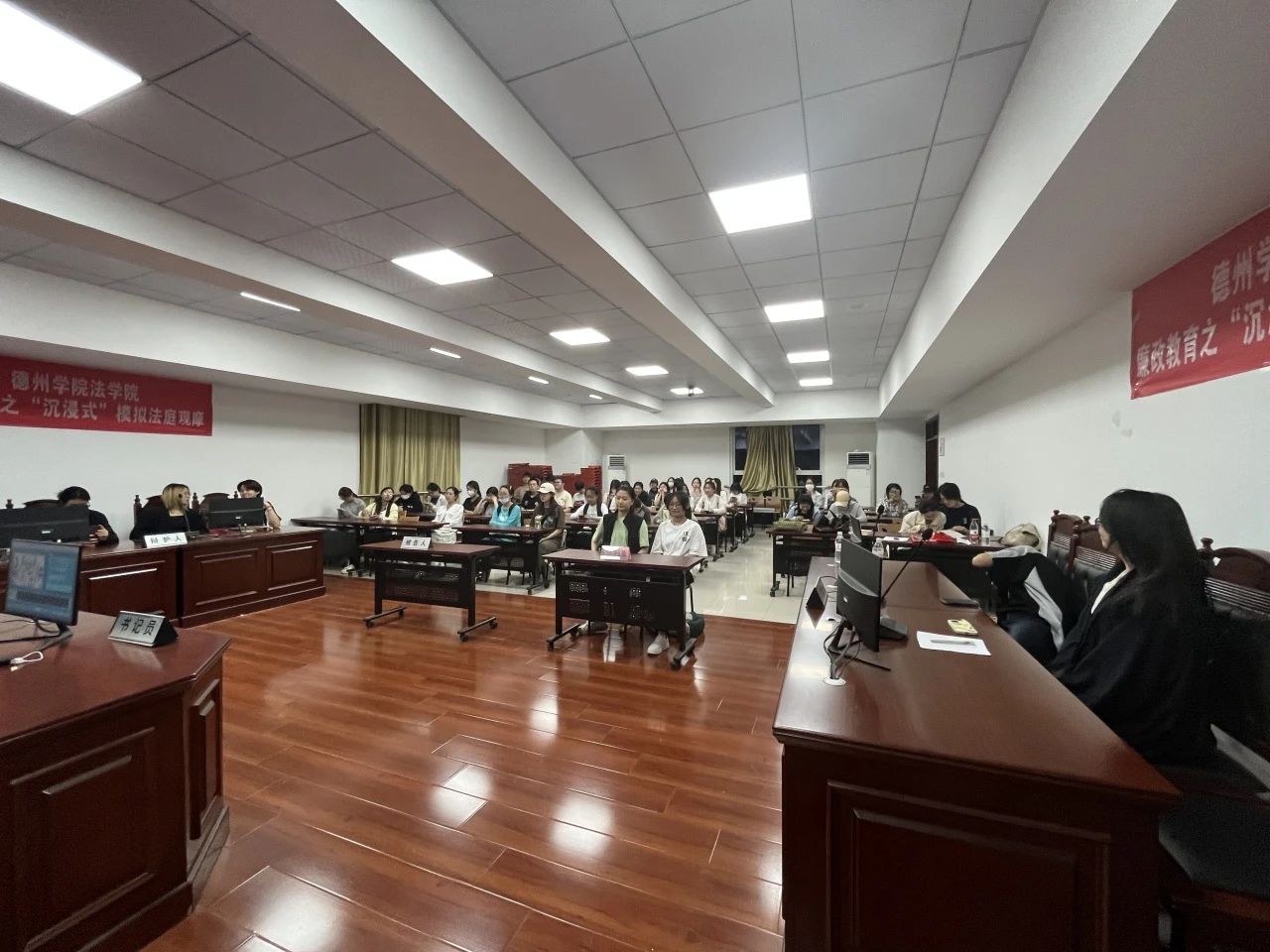 为进一步弘扬法治精神,不断丰富法治宣传教育的形式与内容,营造平安和谐的校园环境。2024年5月26日下午,ladbrokes立博于博文楼427教室与ladbrokes立博模拟法庭实验室开展“模拟法庭零距离,法润青春护成长”主题活动——模拟法庭初体验参观。法学社、模拟政协、宪法法律宣讲团80余名员工参加本次活动。