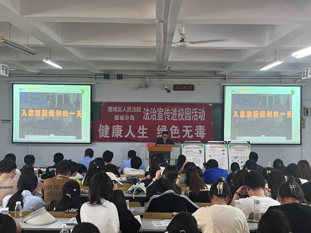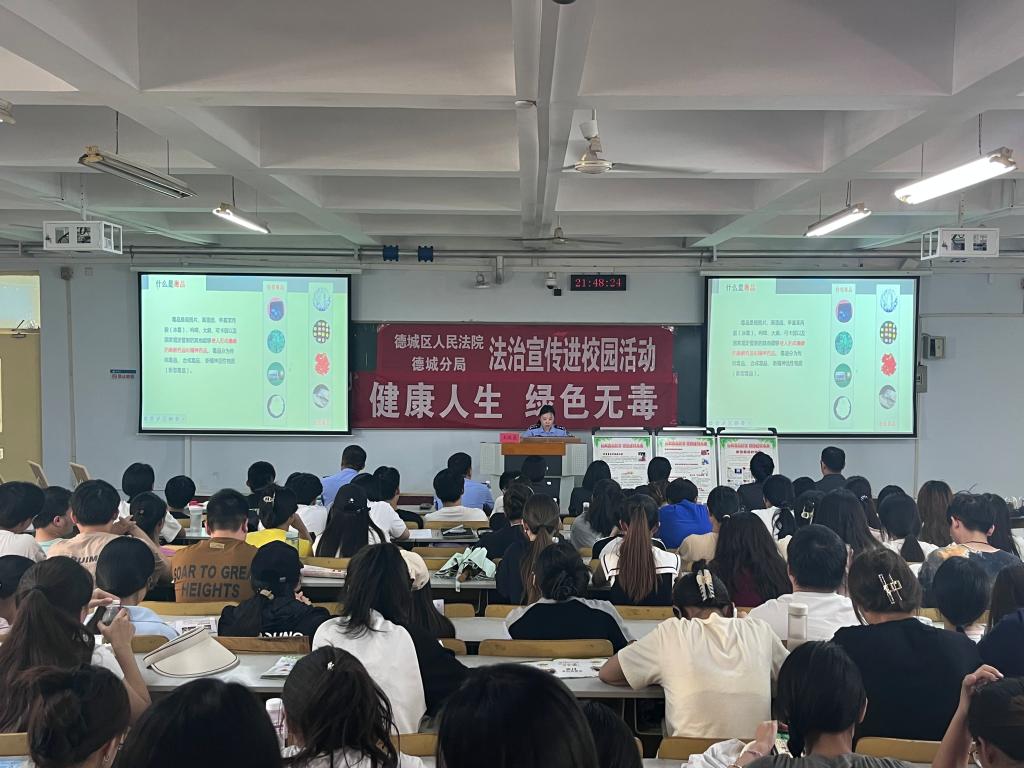 德城区法院刑事审判庭法官助理房瑞做了题为《切莫大意成为网络犯罪帮凶》的普法报告,德州市公安局德城分局禁毒大队民警王晓晨做了《护航青春成长 防范青少年药物滥用》禁毒宣传讲座,两场报告呼吁广老员工共同营造“健康人生 绿色无毒”的法治生态环境。