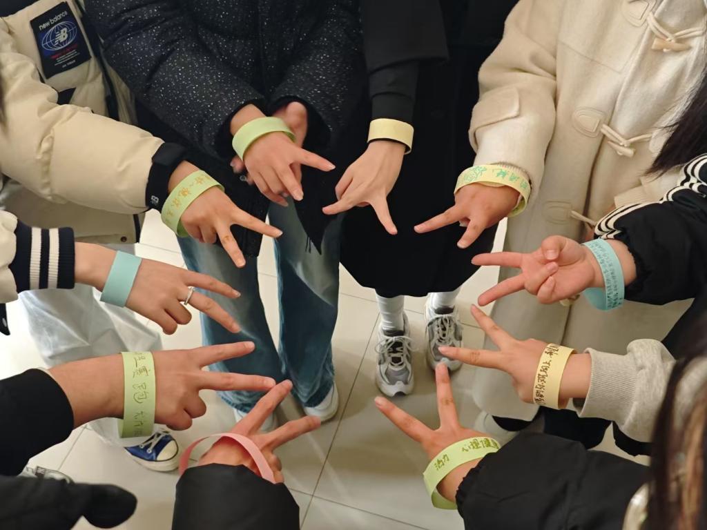 活动尾声,在主持人的引领下,全体人员参与了“创意能量手环改造”活动。心理委员们精心装饰彩色手环,巧妙融入象征个人工作规划的独特元素,借此表达对未来工作的清晰规划与美好期许。