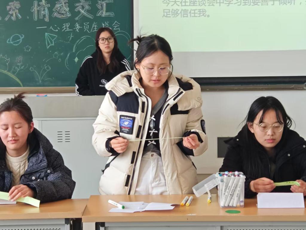 随后的“你说我做”互动游戏环节,心理委员们在实际参与过程中,深刻领悟到沟通准确性以及双向沟通的关键意义。在经验分享环节,心理委员们踊跃发言,纷纷讲述了过去半年工作中的收获,也坦诚提出了工作中遇到的问题,并相互交流宝贵经验,现场讨论氛围热烈。