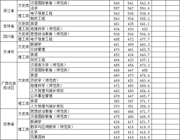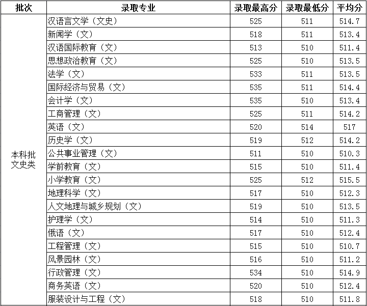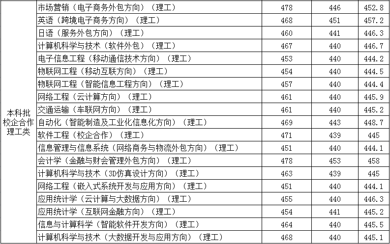 2017年校企合作本科文史、理工类各专业录取分数统计表