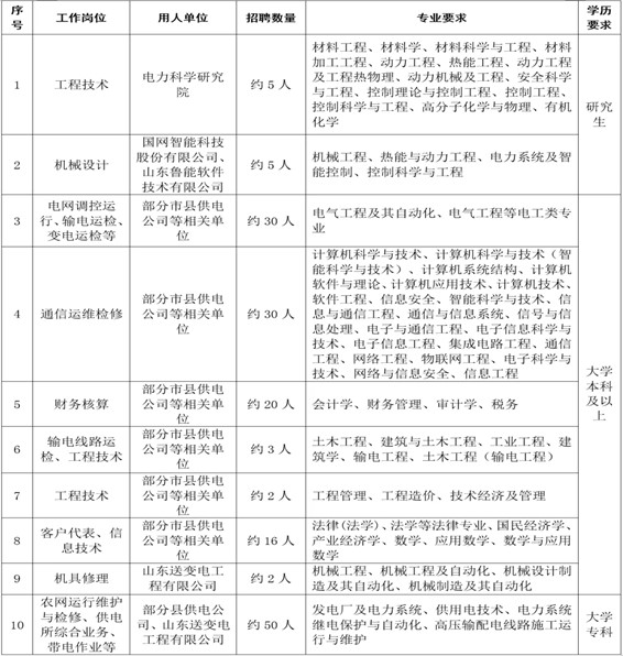 3.笔试、面试的时间地点,详见国家电网有限公司人力资源招聘平台国网山东省电力公司有关公告通知。