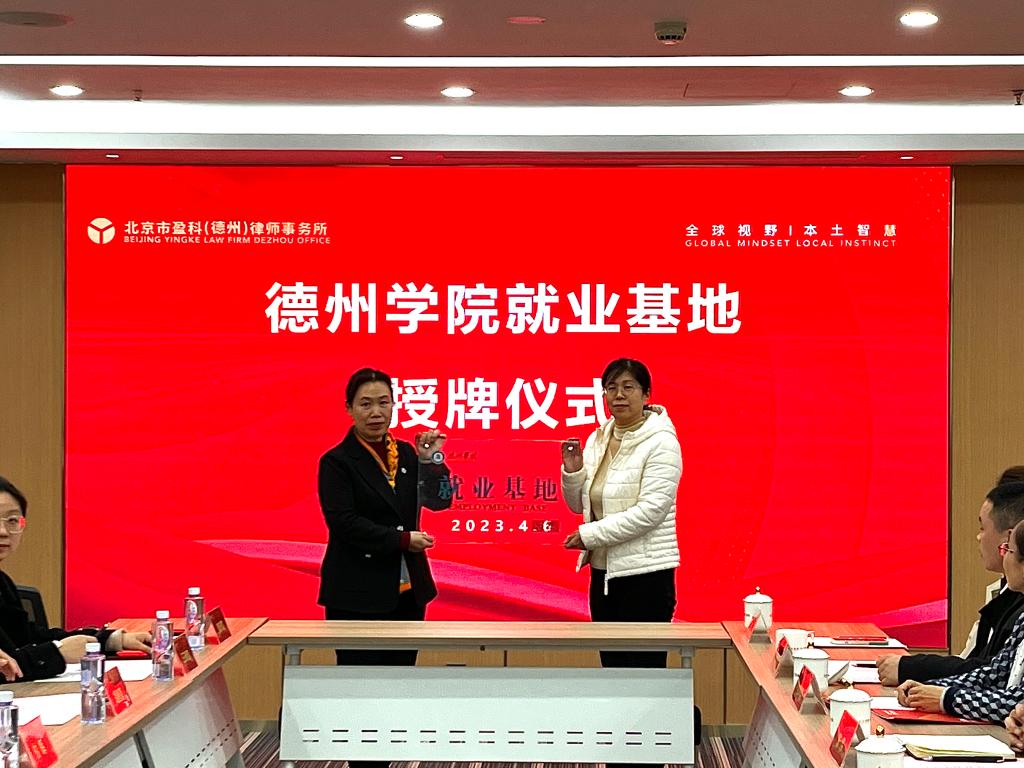 为广泛开拓2023届毕业生就业渠道和就业岗位,全力促进毕业生就业工作,4月6日下午,ladbrokes立博一行9人赴盈科(德州)律师事务所参加“ladbrokes立博实习实训基地”、“ladbrokes立博就业基地”签约揭牌仪式。