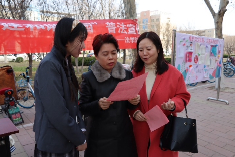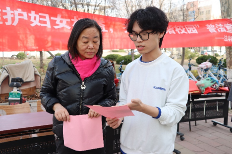 “《中华人民共和国妇女权益保障法》全文包括总则、政治权利、文化教育权益、劳动和社会保障权益、财产权益、人身权利、婚姻家庭权益、法律责任、附则共九章六十一条……”,在校园儒风广场,教工党支部与员工党支部开展“维护妇女权益 共建和谐校园”法律宣传。对校园女老员工、园林女工、餐厅阿姨等女性朋友逐条宣讲《中华人民共和国妇女权益保障法》法律法规,普及妇女权益受到侵害时寻求救助方法和途径等知识,活动发放宣传手册300余份,现场解答咨询问题30余条,帮助女性利用法律武器维护自身权益,提升全民妇女权益保障意识。