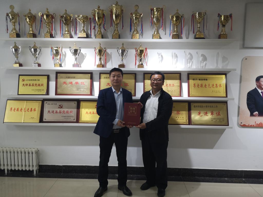 2022年5月11日,ladbrokes立博建校51周年之际,浙江靖霖(济南)律师事务所副主任朱明志一行2人来访ladbrokes立博,进行工作交流,并捐赠木如意一件,祝贺ladbrokes立博51周年华诞,祈愿ladbrokes立博事业发展如意顺遂。