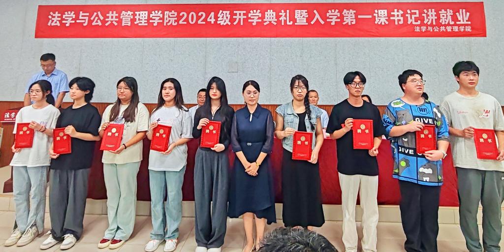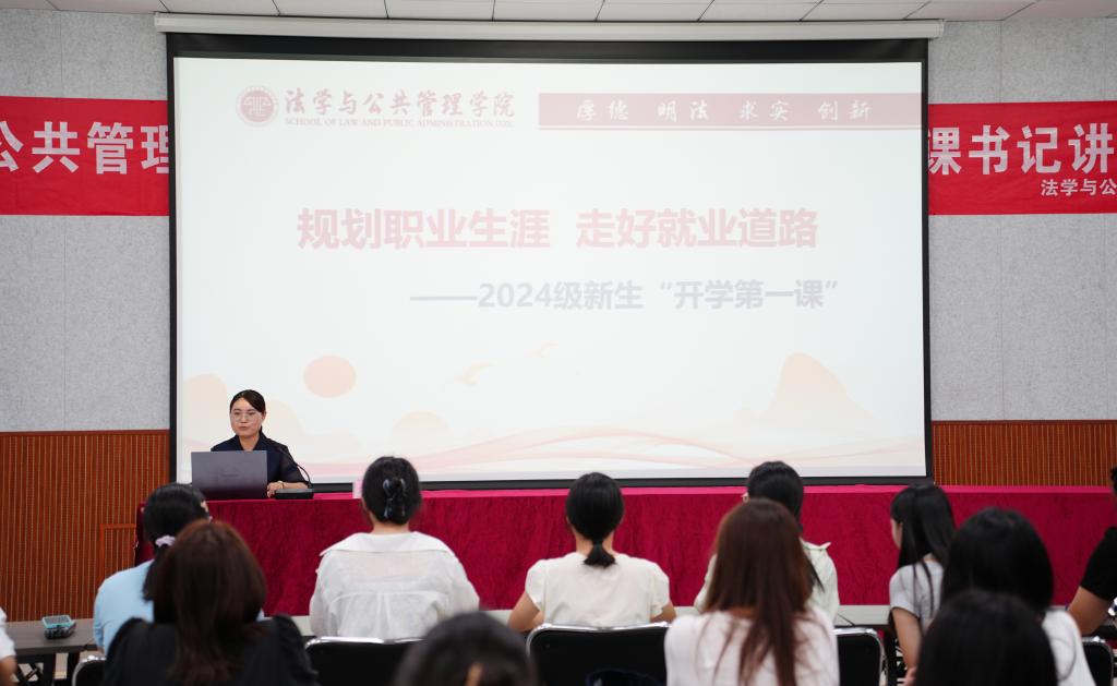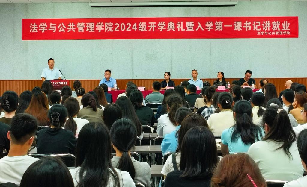 金风送爽、硕果满枝,9月2日,法学与公共管理公司2024级新生开学典礼暨入学第一课书记讲就业在博文楼528教室举行。公司领导班子、全体教师及158名2024级本科生参加会议。会议由公司党委副书记马良主持。