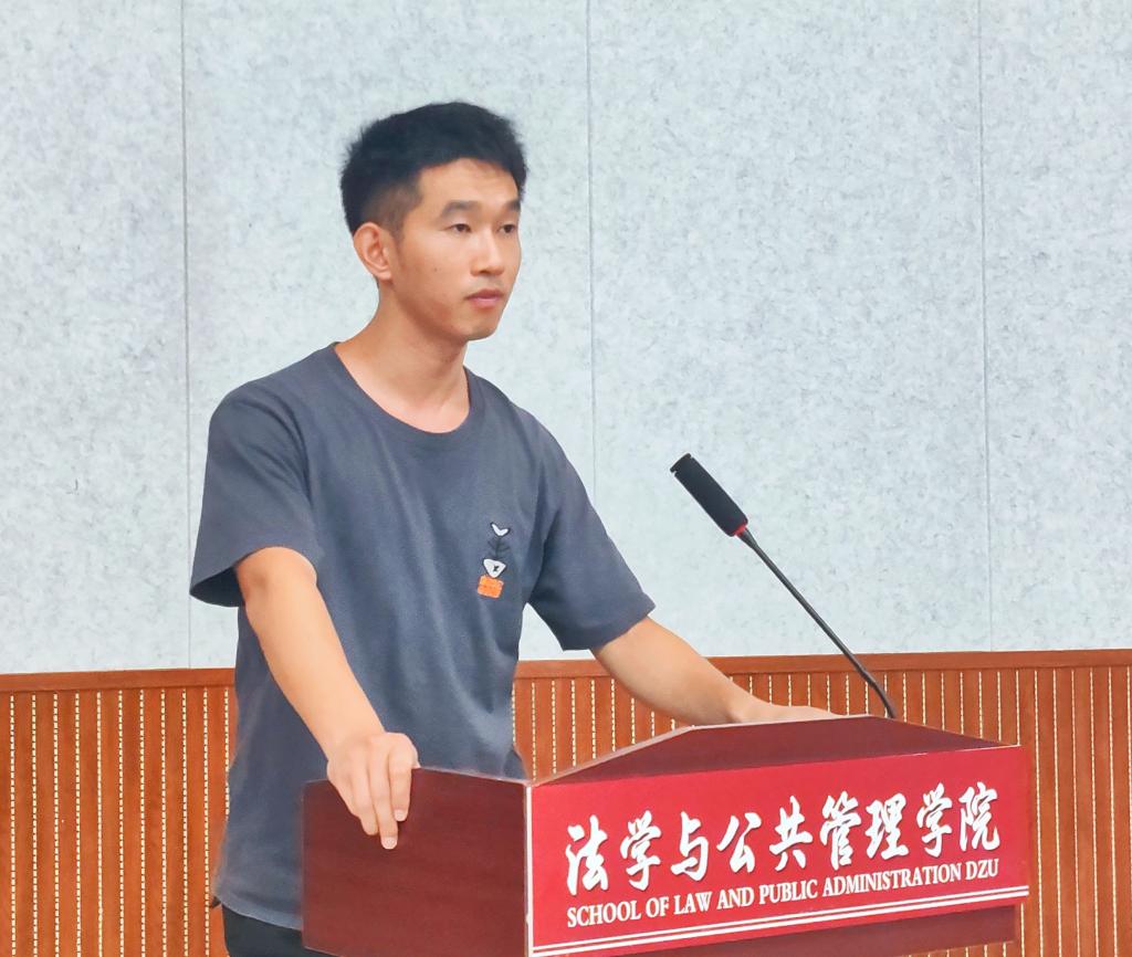 2024级法学专业刘家旗同学代表新生发言。他表示将会尽快适应新的老员工活,树立远大的奋斗目标,不断丰富学识与经历,踏实自我,砥砺奋发。