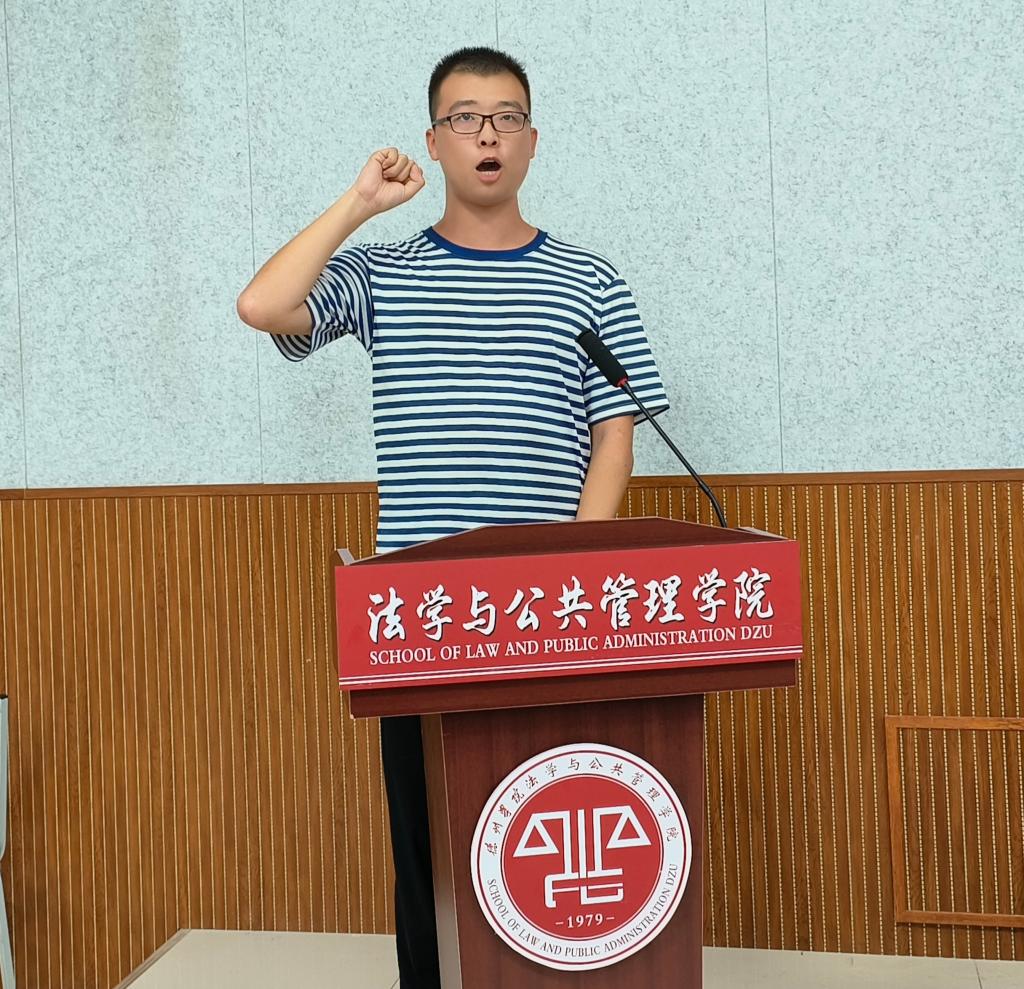 2021级法学专业殷国鑫带领全体新生进行了入学宣誓。全体新生斗志昂扬,用铿锵洪亮声音表达了对公司庄严的承诺,将以青春之我担负民族复兴之大任。