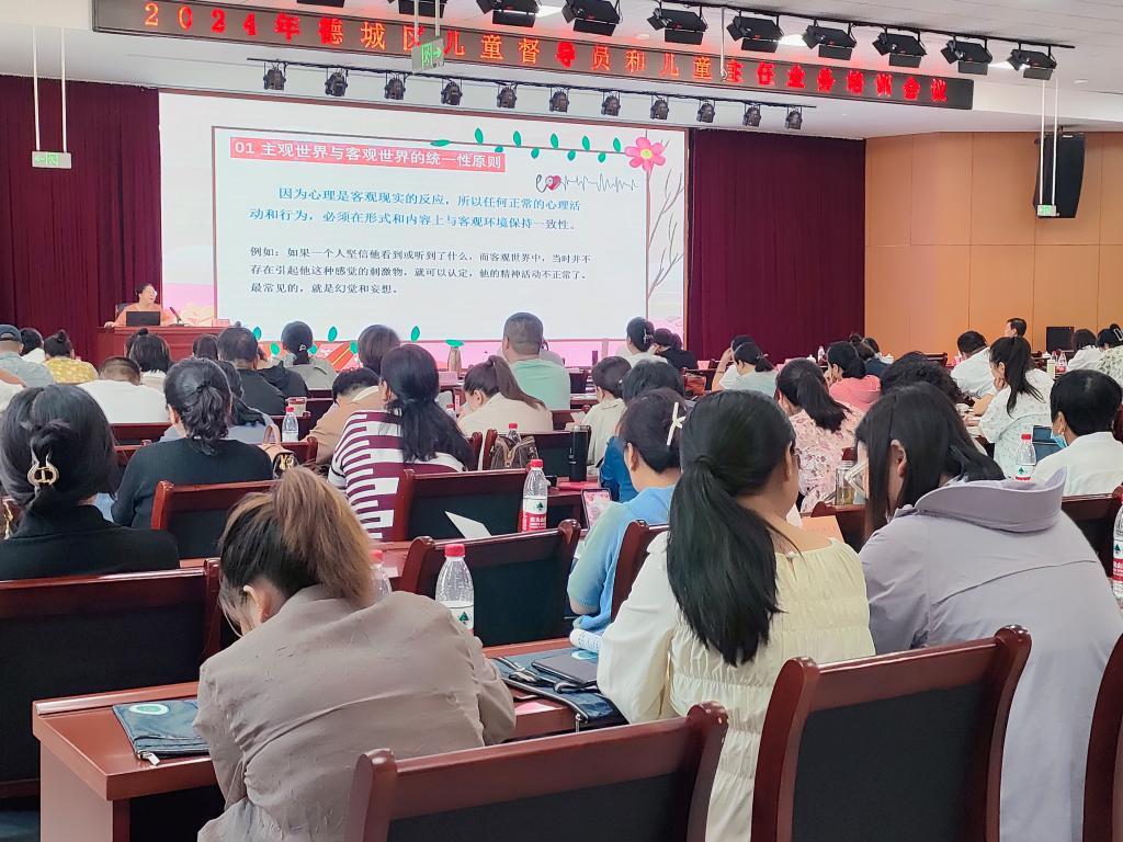 2024年6月27日,公司李梦妍老师受邀为德城区200余名儿童工作者进行心理健康培训讲座,德城区各镇(街)儿童督导员、儿童主任共200余人参加本次培训。