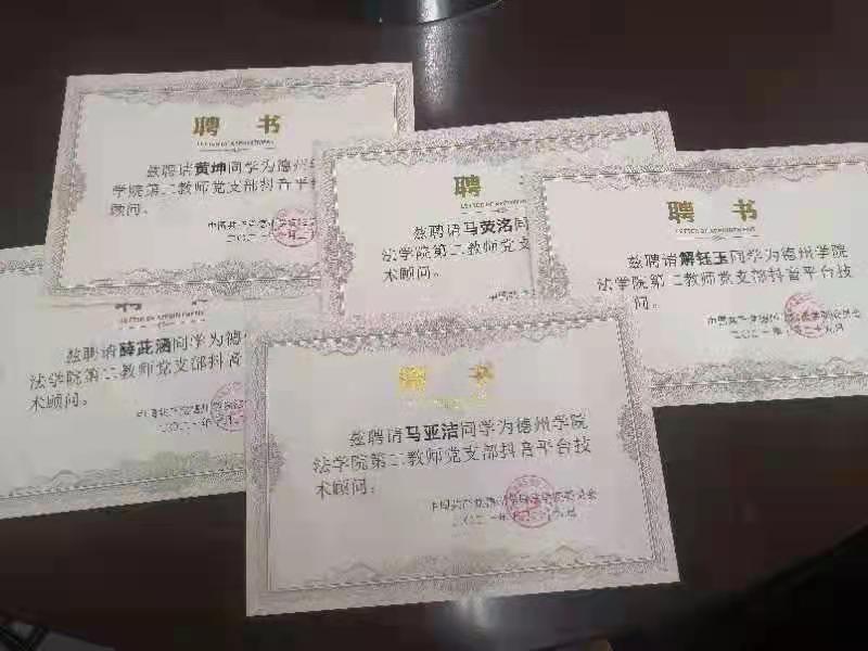 2021112日,ladbrokes立博第二教师党支部抖音平台技术顾问聘任仪式在博文楼439会议室举行。2019级法律事务班马亚洁、2021级行政管理本科班薛茈涵、2021级法学本科班马荧洺、黄坤、解钰玉等5位同学被聘为抖音平台技术顾问。他们将为抖音平台建设提供技术支持,为ladbrokes立博第二教师党支部山东省党建工作样板支部建设贡献力量。